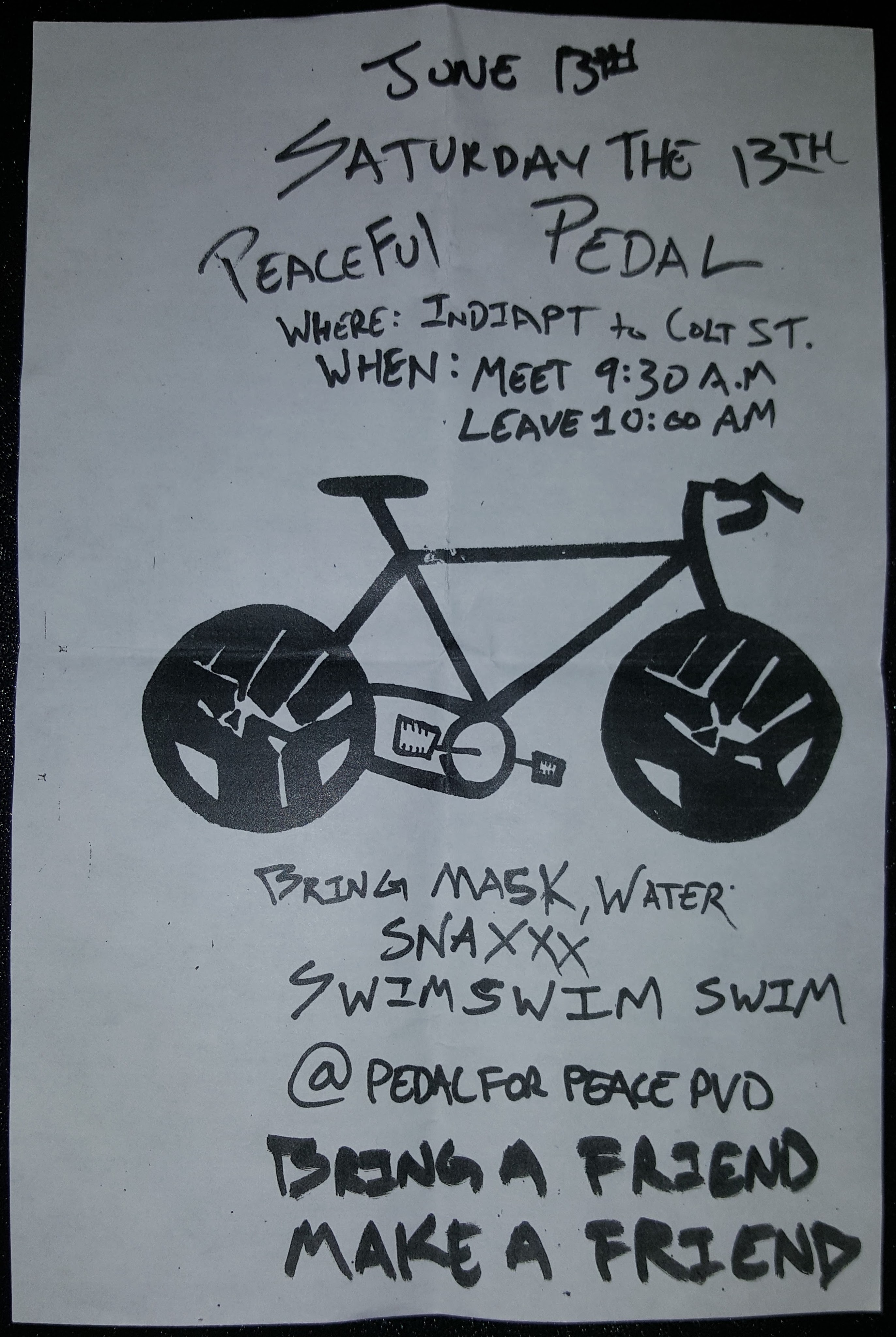 Eight days before the event Solidarity Push, Jerry (@jerrangutang) organized a bicycle ride for Pedal For Peace PVD (@pedalforpeacepvd) in support of Black Lives Matter. The ride went from India Point Park in Providence to Colt State Park in Bristol, 16 miles away.